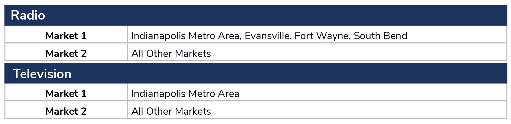Market is defined by the size of the market your station serves. Simulcast stations can enter only in the largest market they serve.